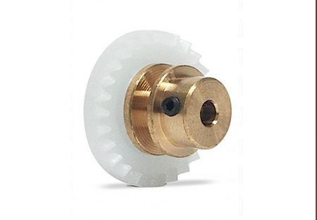 Corona 29d. en línea, alma de bronce, para eje 2.38mm Desplazada 1mm. Fijación por tornillo allen M2