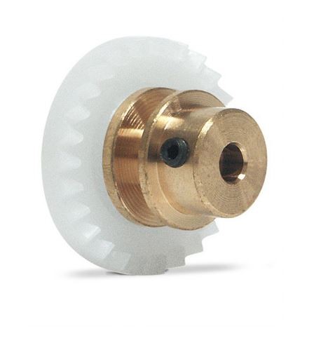 Corona 27d. en línea, alma de bronce, para eje 2.38mm Desplazada 1mm. Fijación por tornillo allen M2