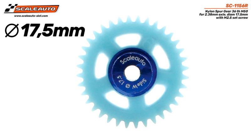 Corona 36d. Sidewinder, M50 Nylon, para eje 2.38mm. Fijación por tornillo M2,5mm