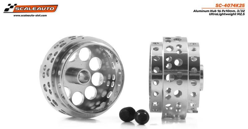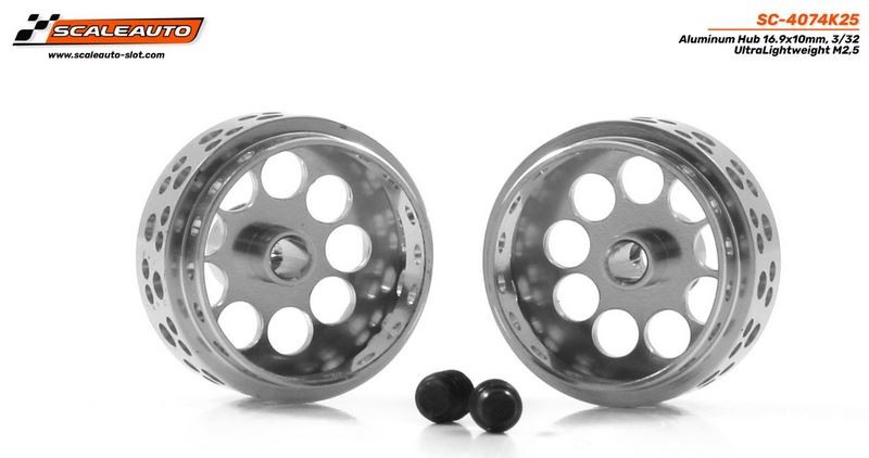 Llanta Aluminio 16.9x10mm ultra aligerada V.2 para eje 2.38mm, fijación por tornillo M2,5, peso 1.10gr.